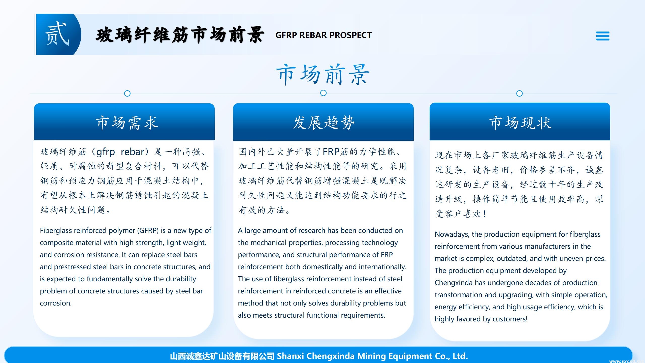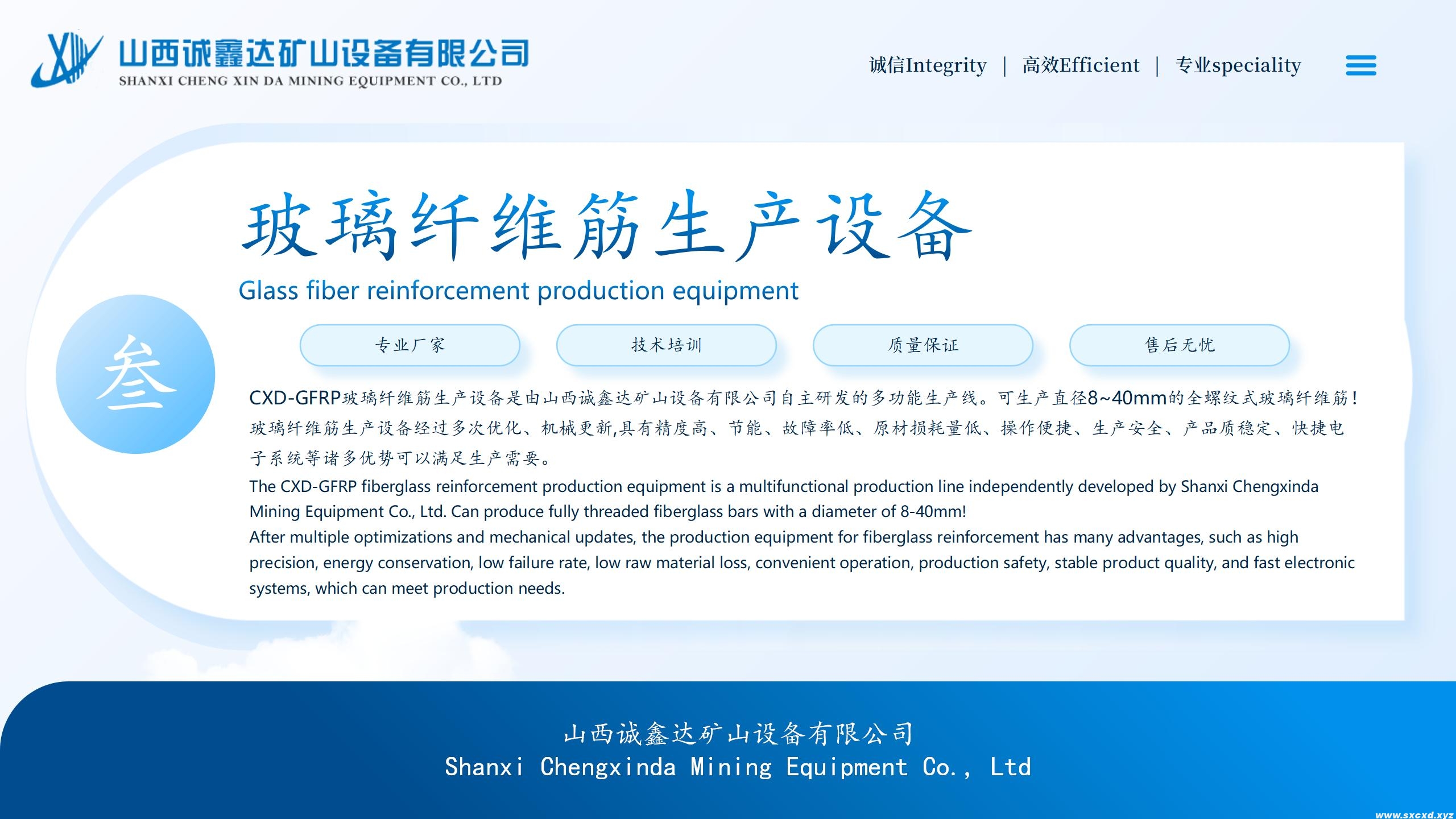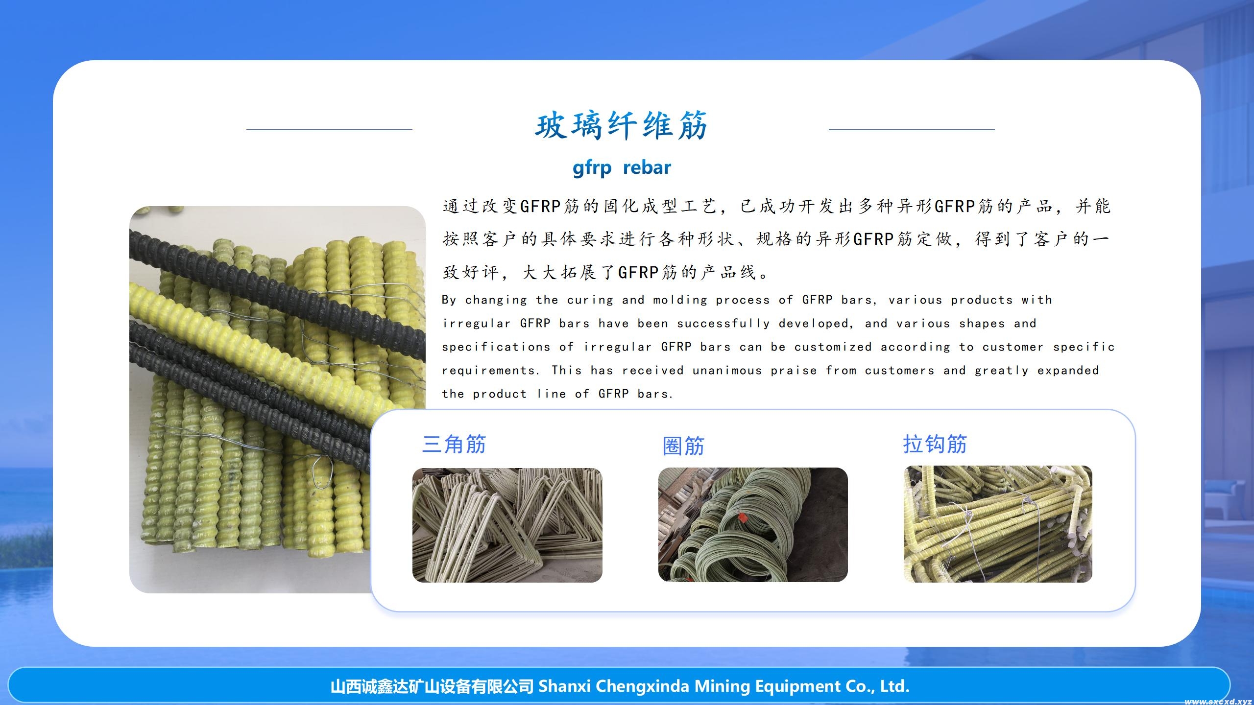 玻璃鋼全螺紋錨桿生產(chǎn)線生產(chǎn)的玻璃鋼錨桿桿體性能不僅滿足(中華人民共和國煤炭行業(yè)標準MT/T1061-2008)要求,而且還能滿足發(fā)達國家先進技術標準的要求(BS7861-2007),該生產(chǎn)線生產(chǎn)效率高,能耗低,用工少,適用性強,不僅適用玻璃鋼(GRP)全螺紋錨桿,的生產(chǎn),還適用于生產(chǎn)土工工程用玻璃纖維(GFRP)增強筋材的生產(chǎn)!